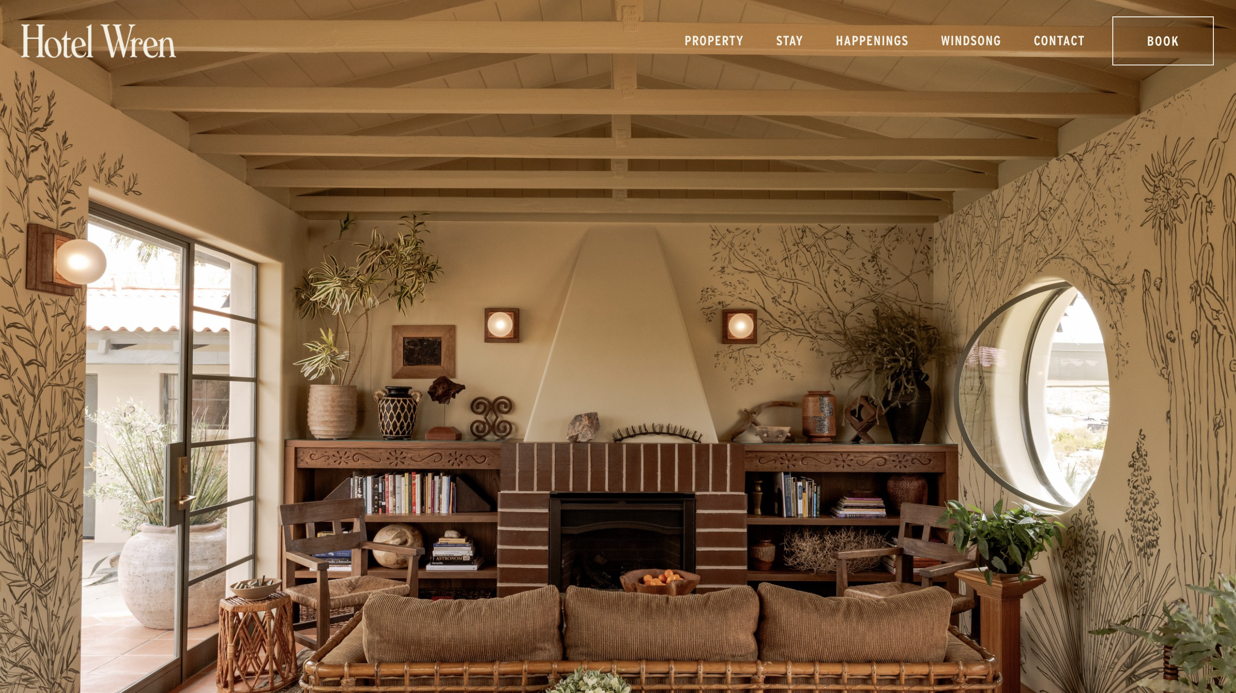 The site features large, sunlit images that showcase Hotel Wren’s 12 thoughtfully designed rooms in rich detail.